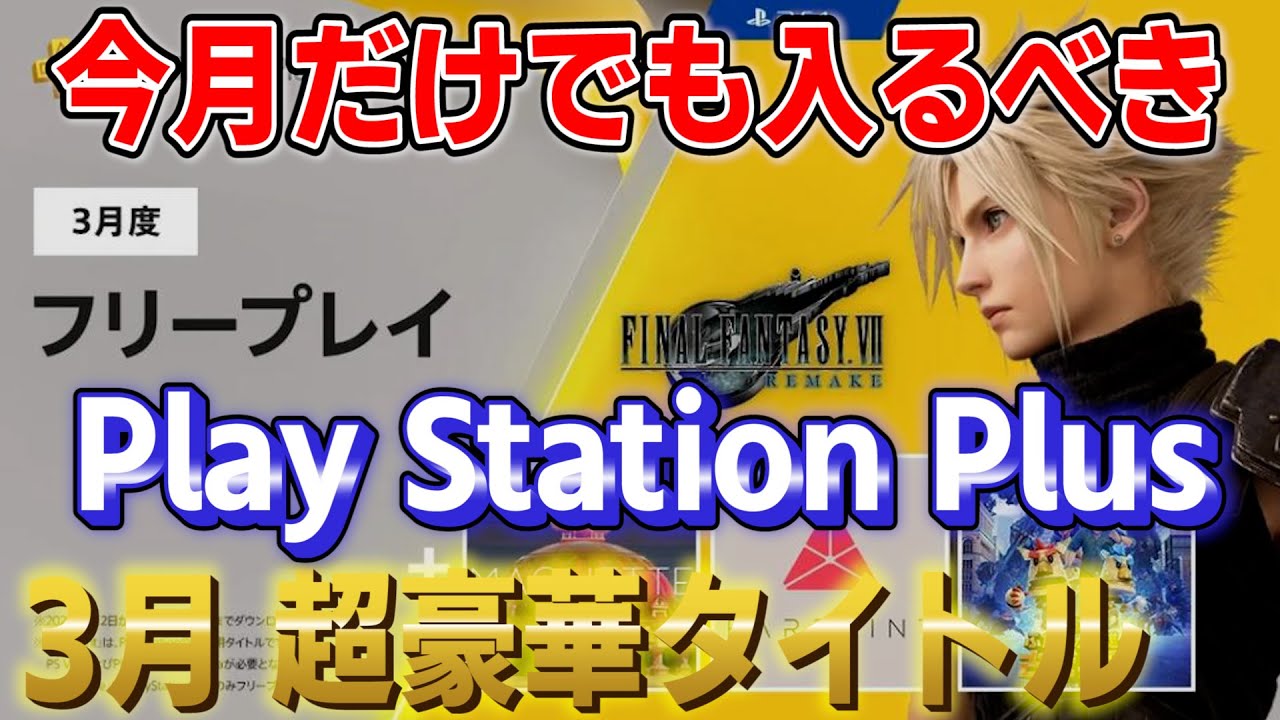 【PSプラス】3月フリープレイのタイトルが超豪華‼FF7リメイクから他タイトルも全て紹介!